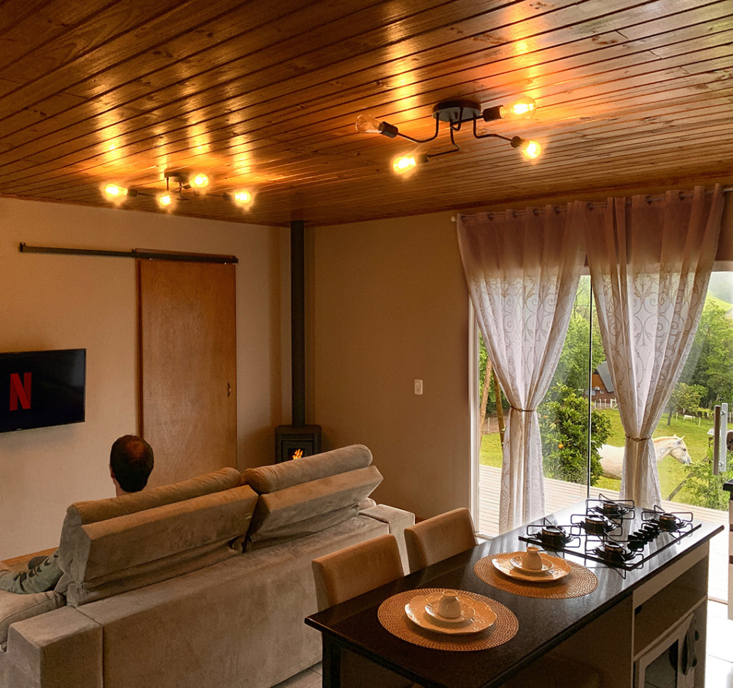 Um hidromassagem duplo, Tv led 40 polegadas com Netflix, lareira canadense e cozinha completa.